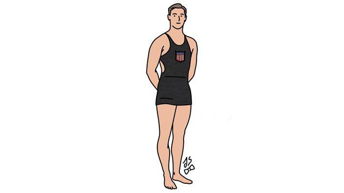 L’homme s’est longtemps méfié de l’eau. Alors, lorsqu’il a découvert au milieu du XIXe siècle le plaisir des bains, il a fallu inventer un vêtement spécifique pour oser, en public, se montrer dévêtu. En 1924, aux Jeux olympiques de Paris, hommes et femmes nagent avec quasiment la même tenue: un maillot de bain une pièce. Un short moulant couvre le tiers haut de la cuisse, et le haut est très échancré, tel un débardeur. Les deux étant réunis grâce à une couture à la taille. Comme les maillots les plus évolués d’aujourd’hui! Mais comme il existe une petite dose de pudeur héritée du siècle passée, souvent le haut redescend en couvrant, comme d’une petite jupe, l’entrejambe. Une option abandonnée pour améliorer la vitesse de nage. Cette jupette donnait par ailleurs aux hommes une allure de sylphide.
