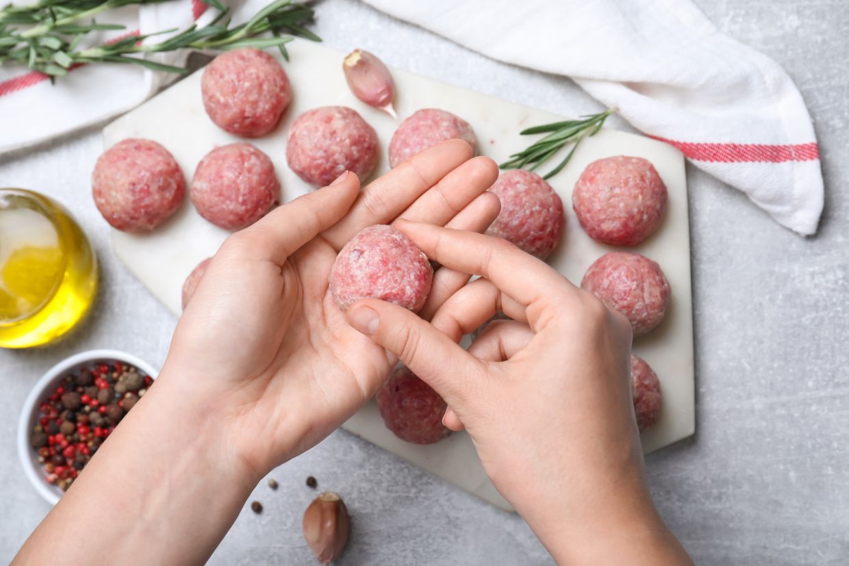 Ставьте фарш в холодильник на 30–60 минут, чтобы связать ингредиенты и придать яркости вкусу. Особенно это важно для котлет и митболов — без охлаждения они не будут держать форму при жарке. Фарш для котлет и бургеров необходимо выдержать в холодильнике 8–12 часов, накрыв крышкой или пищевой плёнкой. Фарш для митболов рекомендуется подержать в холодильнике 40–120 минут.
