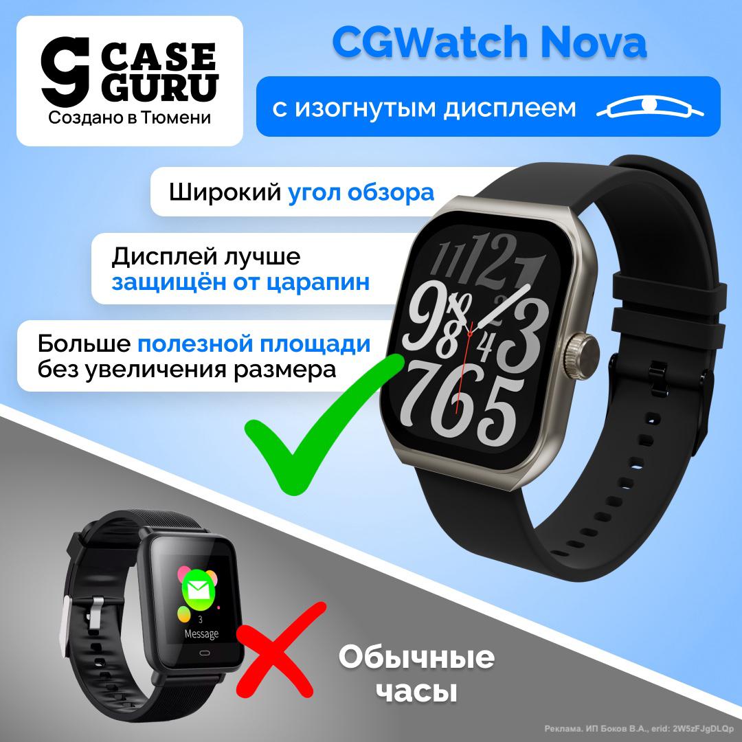 CGWatch Nova — умные часы с изогнутым экраном, усиленное стекло с углеволокном гораздо прочнее стекла дорогих аналогов от Apple и Samsung. Корпус из корабельной стали защищают часы от царапин, падений и коррозии.