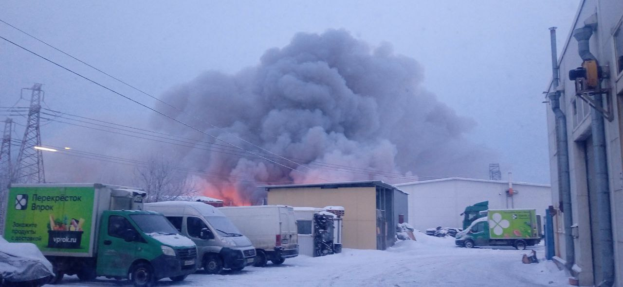 Пожарные больше десяти часов ведут борьбу с огнём в складском комплексе Wildberries в Пушкинском районе Петербурга. К вечеру 13 января там всё ещё горит.
