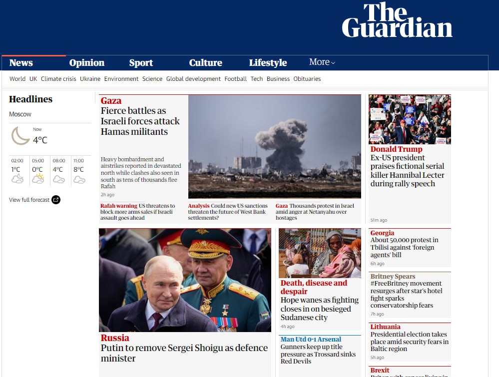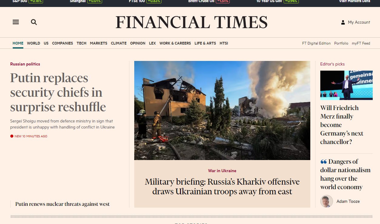 Информация о решении Владимира Путина назначить нового министра обороны РФ стала главной новостью мировых СМИ