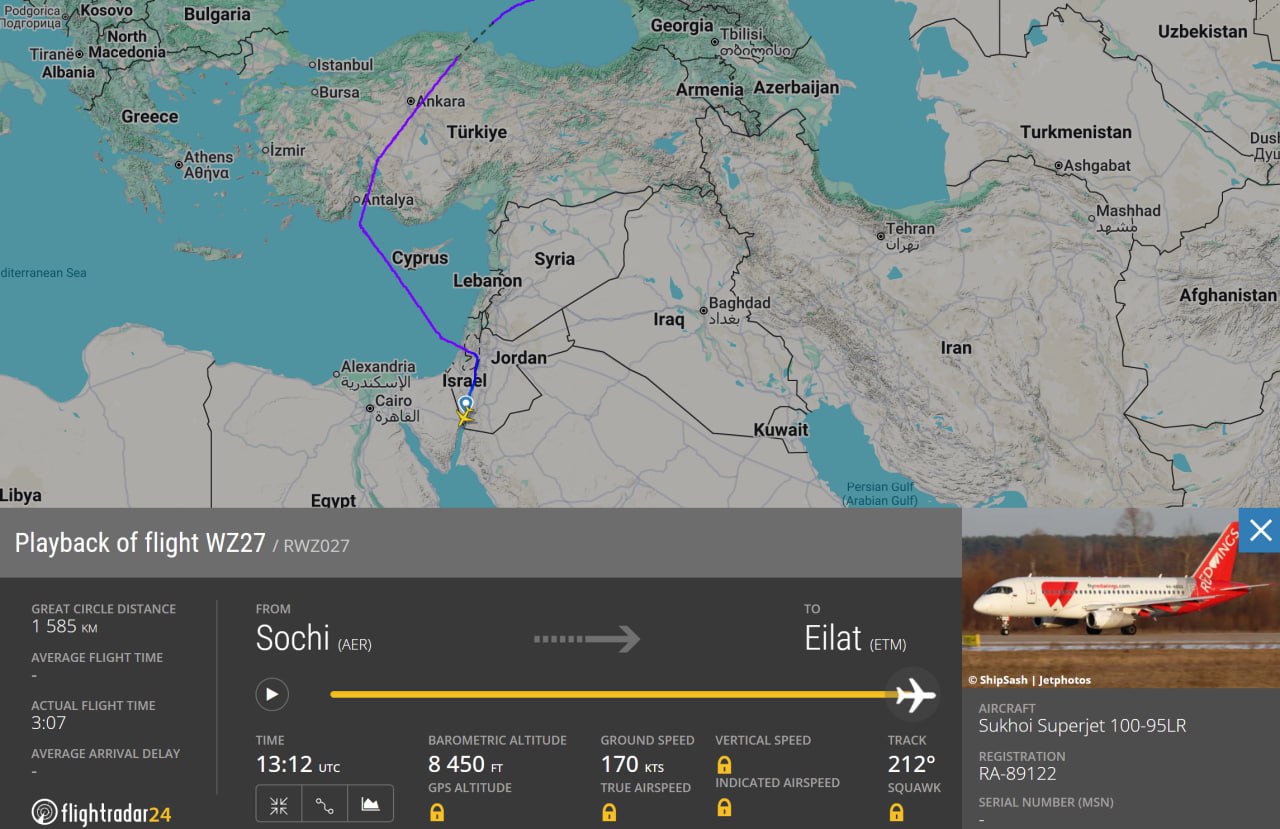 🇮🇱 Red Wings успешно совершили первый рейс в израильский Эйлат и сейчас летят обратно. До этого самолёты из России летали только в Тель-Авив.