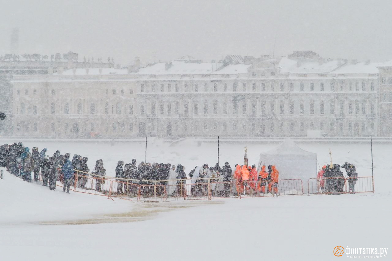 Местами к купели выстраиваются очереди. В прошлом году во время празднования Крещения Господня в Петербурге в городских купелях окунулись более 28 тысяч человек, то есть примерно каждый двухсотый житель города.