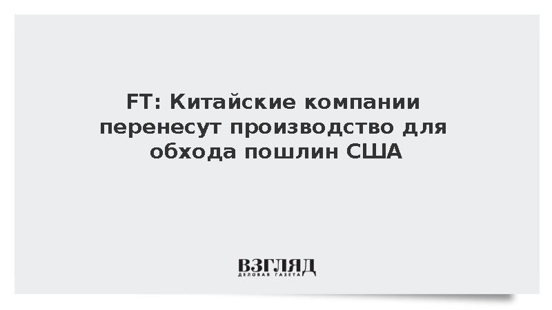 Китайские производители планируют ускорить перенос производства в другие страны, чтобы обойти новые пошлины США, которые предполагают 10-процентное увеличение тарифов на китайские товары наряду с уже существующими, пишет Financial Times.