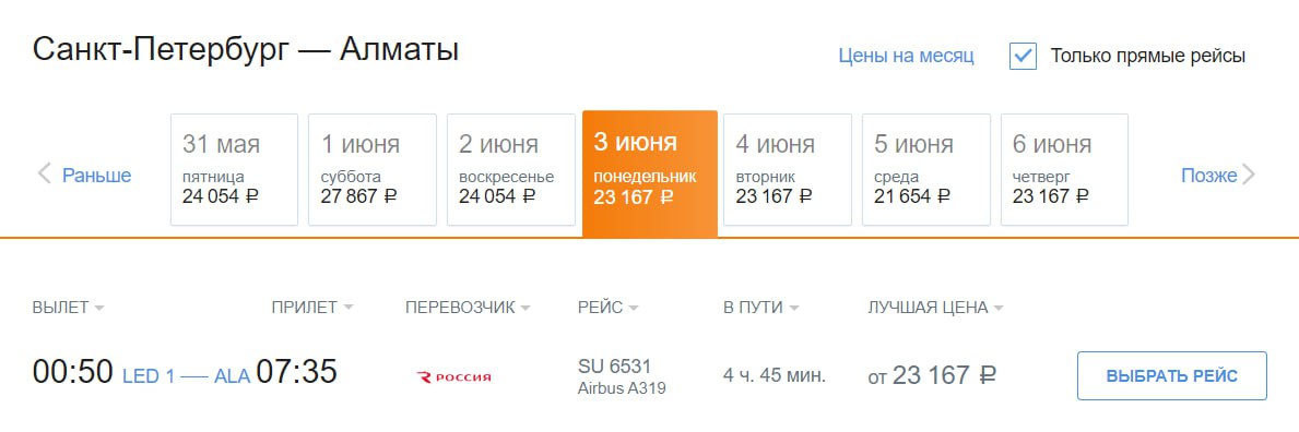 ✈️ 🇰🇿 «Россия» с 1 июня начнёт выполнять рейсы из Санкт-Петербурга в Алматы. Летать будут на Airbus A319 четыре раза в неделю — по понедельникам, вторникам, четвергам и субботам.