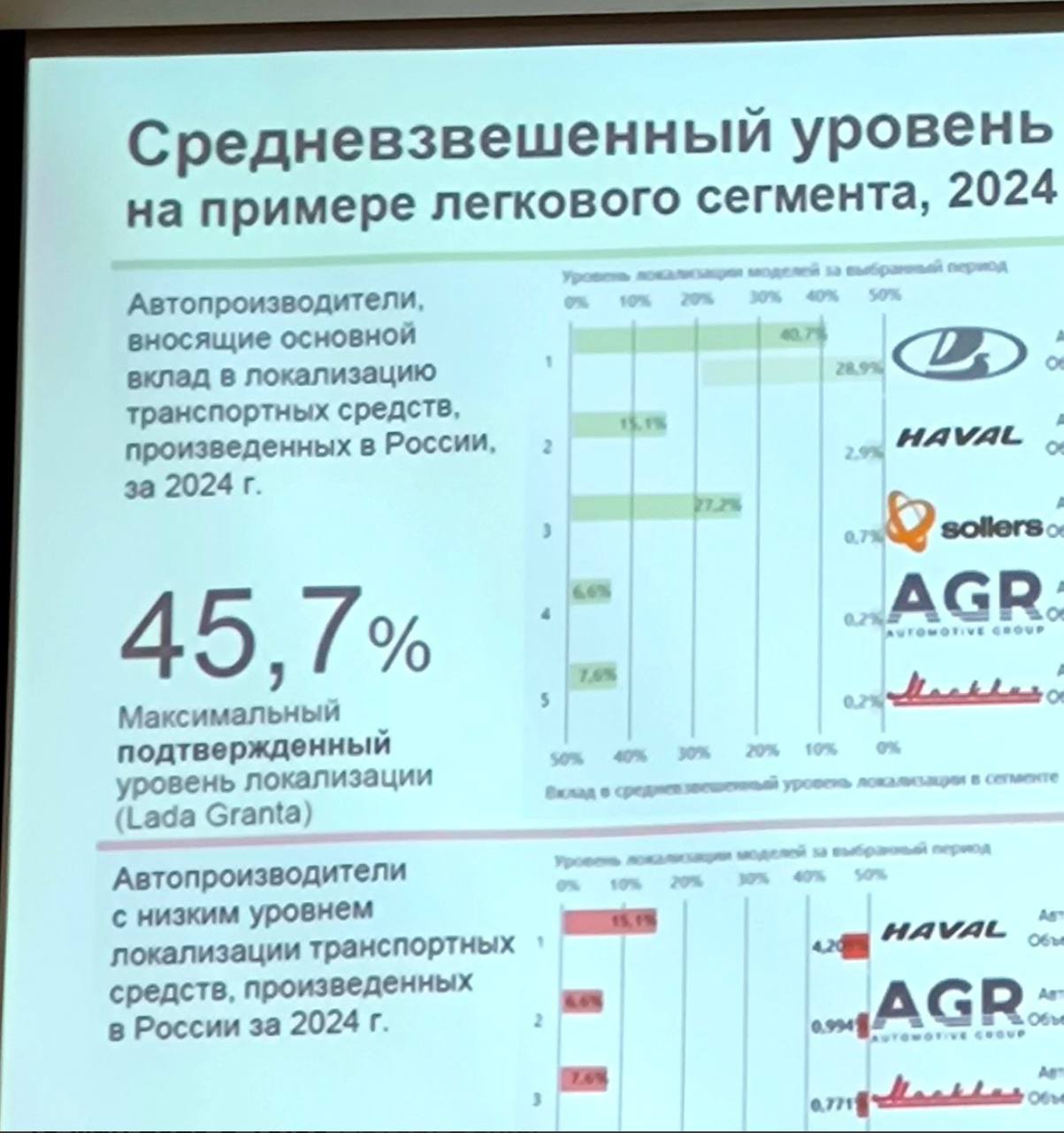 Внимание, Lada Granta оказалась локализована лишь на 45,7%. Об этом сегодня заявил аналитик научно-исследовательского автомобильного и автомоторного института (НАМИ). При этом недавно президент "Автоваза" Максим Соколов уверял: уровень локализации наших авто 90+%.