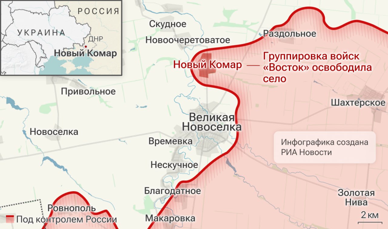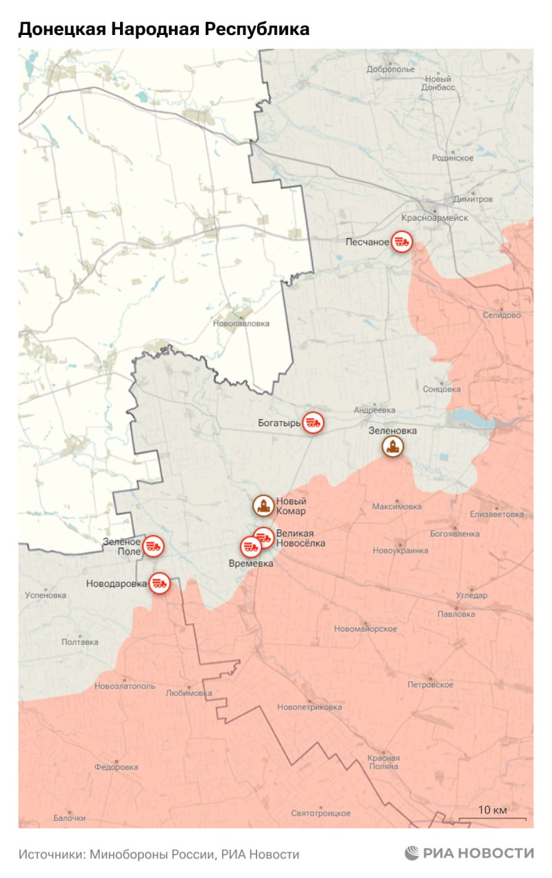▪️Сводка Минобороны: подразделения группировки "Восток" освободили Зеленовку и Новый Комар в ДНР;