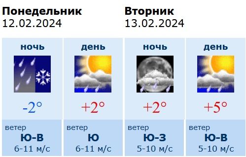 Ночью во вторник, 13 февраля, сохранится тёплая погода, а днём потеплеет ещё на 3° — до +5°.