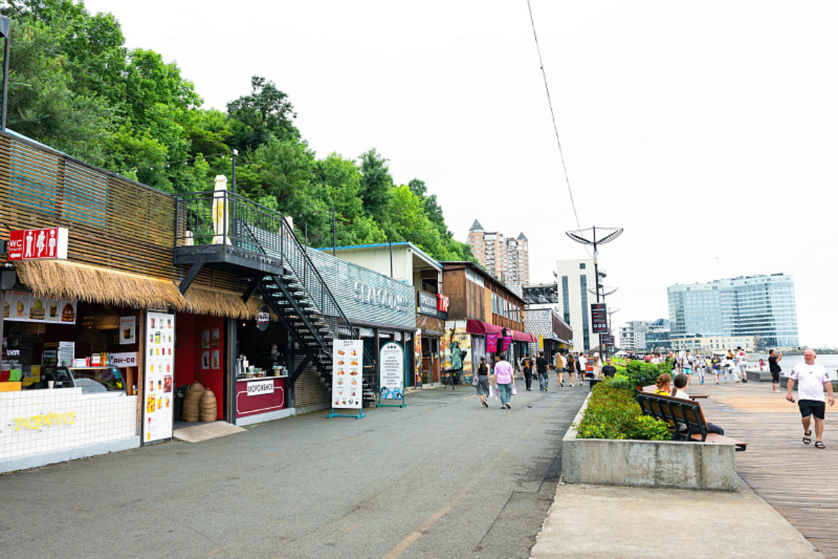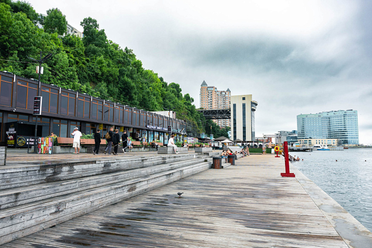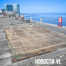 Разбирать объекты на променаде начали несколько дней назад. От баржи до «Косатки ДВ» на деревянном настиле появились прямоугольные следы от снесённых объектов с выводами под коммуникации. Арендатор и управляющий пляжем Илья Шадрин объяснял, что так территорию готовят к реновации: убирают старые объекты и параллельно разрабатывают проект, а в межсезонье приступят к обновлению прогулочной зоны. Просто решили начать «готовить пляж к улучшениям» чуть раньше, видимо, на межсезонье запланировано очень много работы. Изменения, кстати, коснутся и пирса № 7. По словам Шадрина, после реновации пирс переоборудуют в место стоянки прогулочного катера.