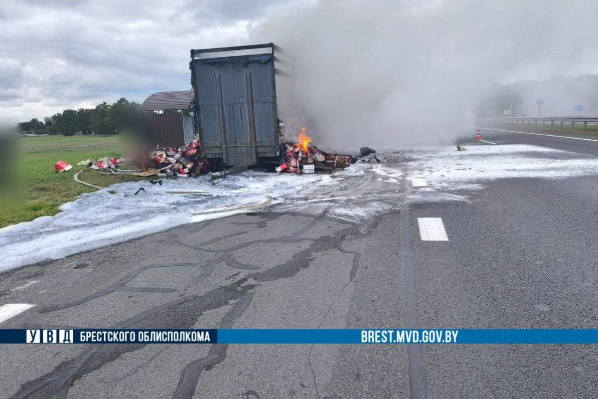 Фура с грузом прямо на ходу загорелась в Кобринском районе