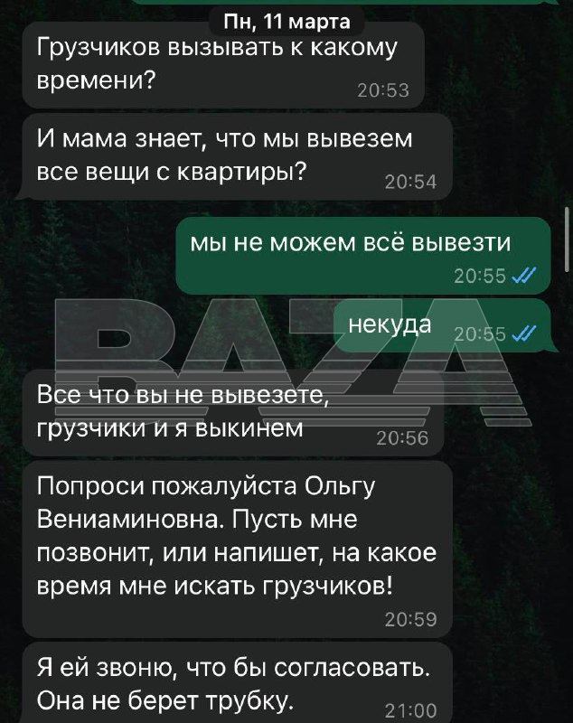 В марте 2024 года внуки и больная дочь были дома, как вдруг в дверь позвонили. Неизвестный представился покупателем квартиры. Семья вызвала участкового, их увезли в отдел для разбирательств. Воспользовавшись отсутствием жильцов, покупатель снял дверь с петель, поменял замок и выставил на улицу Ольгу с дочерью и детьми, а следом сломал мебель и унёс её на помойку. Мужчина и позже настойчиво требовал вывезти вещи семьи и угрожал, что иначе он все выкинет.