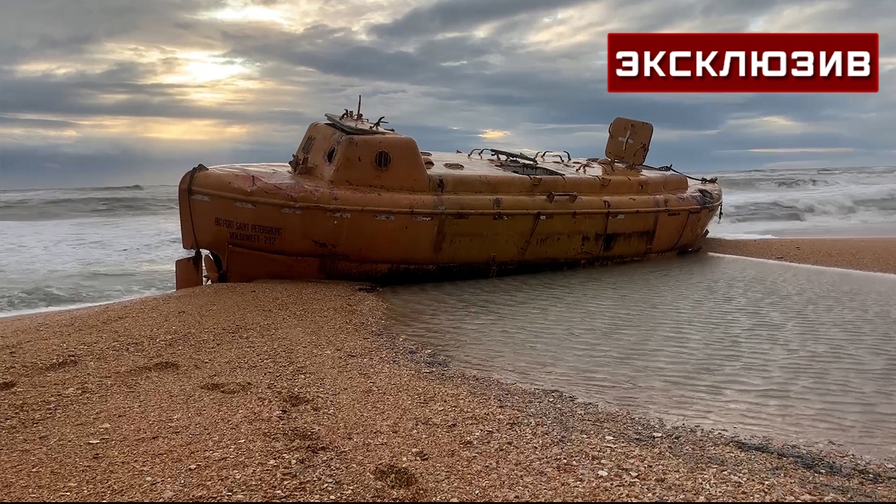 На опубликованных кадрах видно, что в прибрежной зоне усиливается шторм. На пляже также находится шлюпка танкера «Волгонефть 212», который потерпел крушение в Керченском проливе 15 декабря.