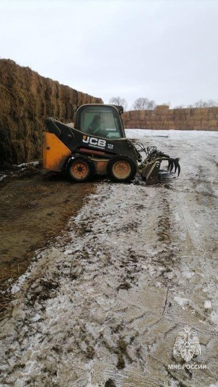 В результате пожара поврежден металлический навес размером 20х40 метров с сеном весом около 600 тонн.