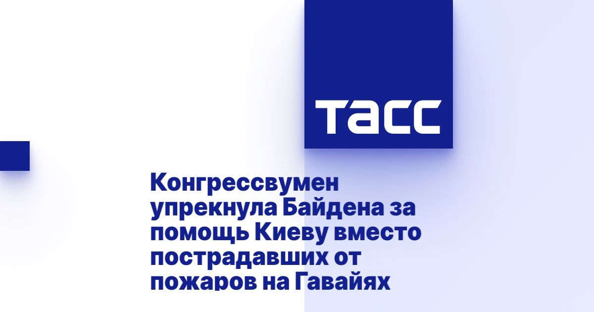 "Байден выделяет одноразовый платеж в $700 бедным людям, которые потеряли все в огне Лахайны (туристический город на гавайском острове Мауи - прим. ТАСС), но хочет отправить очередные $20 млрд Украине!" - написала она на своей странице в соцсети X (ранее Twitter).