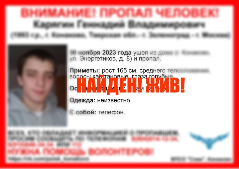В день исчезновения 30-летний Геннадий Карягин ушел из дома №8 по улице Энергетиков, но куда-то запропастился. Из особых примет отмечалось наличие у пропавшего шрамов на лице.