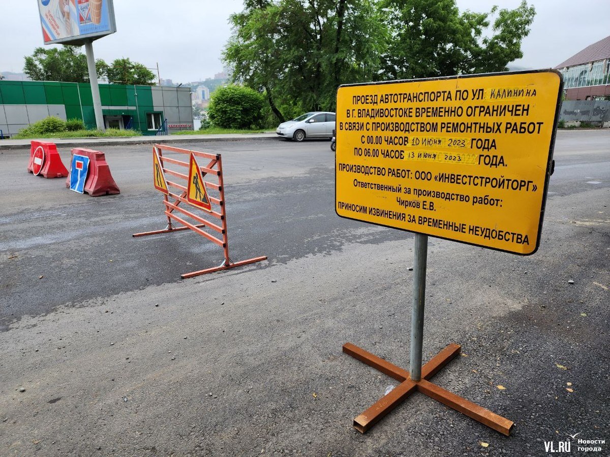 Как и предупреждала администрация Владивостока, сегодня, 10 июня, на улице Калинина ограничили движение и парковку транспорта в районе остановки «Мальцевская» (у ТВК «Калина Молл»). Причём дорогу перекрыли на всю ширину с утра субботы и до позднего вечера понедельника на улице. Это связано с монтажом камеры сети ливневой канализации.