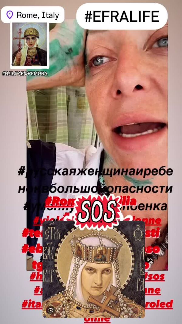 «Мне просто нужно рассказать об исключительном случае насилия против меня. Муж разбил мне голову об пол. Алессандро Сини, родившийся в Марино, гражданин Италии. Я, вы знаете, нахожусь под его насилием уже около девяти лет. Физическим, экономическим, кроме того, он вор, он похитил моего ребенка — сына Арсения Ефремова», — пожаловалась Ефремова в видеообращении.
