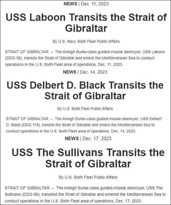 Пентагон сообщает, что на прошлой неделе в Средиземное море вошли еще три ракетных эсминца класса Arleigh Burke ВМС США с управляемым ракетным вооружением на борту.