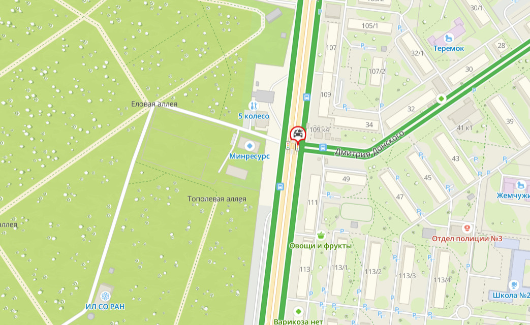 В сообщении указано, что инцидент произошел на пересечении Жуковского и Дмитрия Донского. Машина якобы врезалась в витрину павильона после столкновения с другим автомобилем.