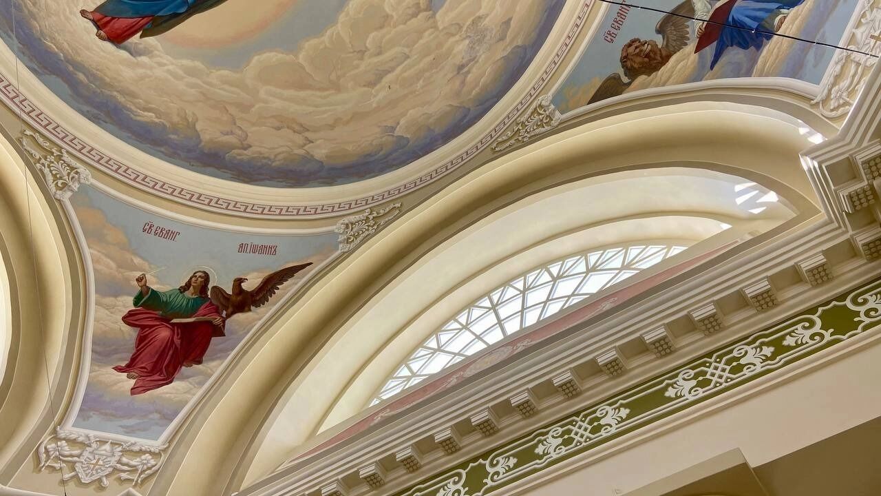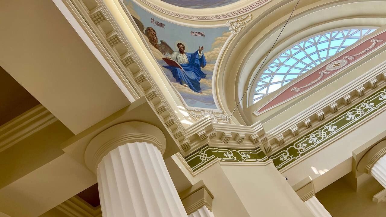 Само здание теперь отапливается, к нему проведена техническая вода. Какие-то элементы декора удалось воссоздать по фотографиям, но в основном это все новодел. Нет ни исторических полов, ни колонн, это «согласованные вольности» архитекторов. Росписи на стенах в храме сделали в 2014–2015 годах, десять лет они стояли в лесах и сейчас реставраторы просто поправили нюансы.