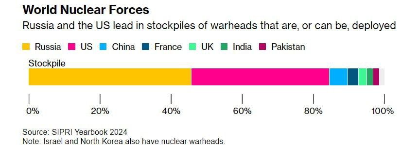 По данным Стокгольмского института исследования проблем мира, на фоне глобальной напряжённости, в ближайшие годы количество ядерных боеголовок, размещенных на ракетах и самолетах будет расти.