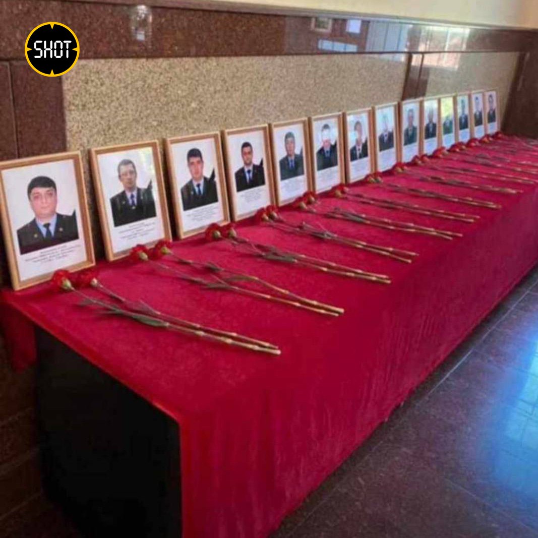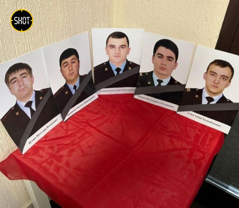 На видео и первом фото — мемориал в здании полиции в Махачкале, на втором фото — в Дербенте (портреты дербентских силовиков также выставлены в махачкалинском отделении).