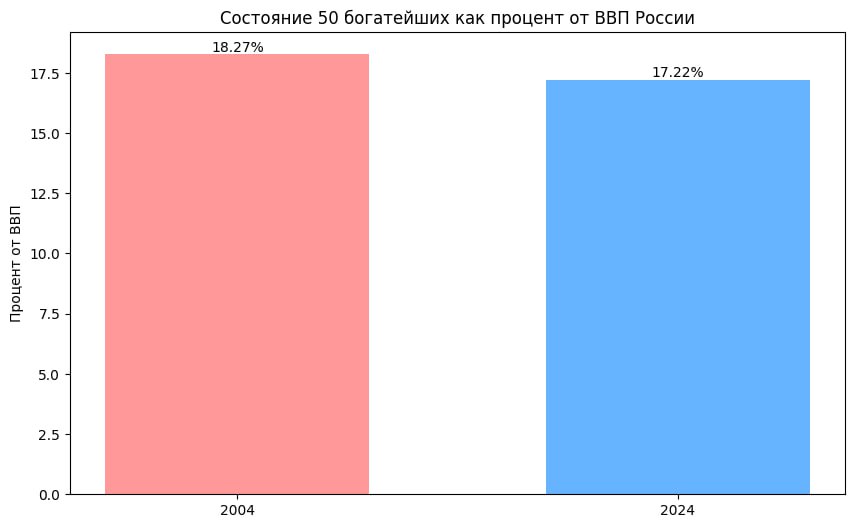 💰Состояние 50 богатейших людей в РФ в 2004 году: $108 миллиардов
