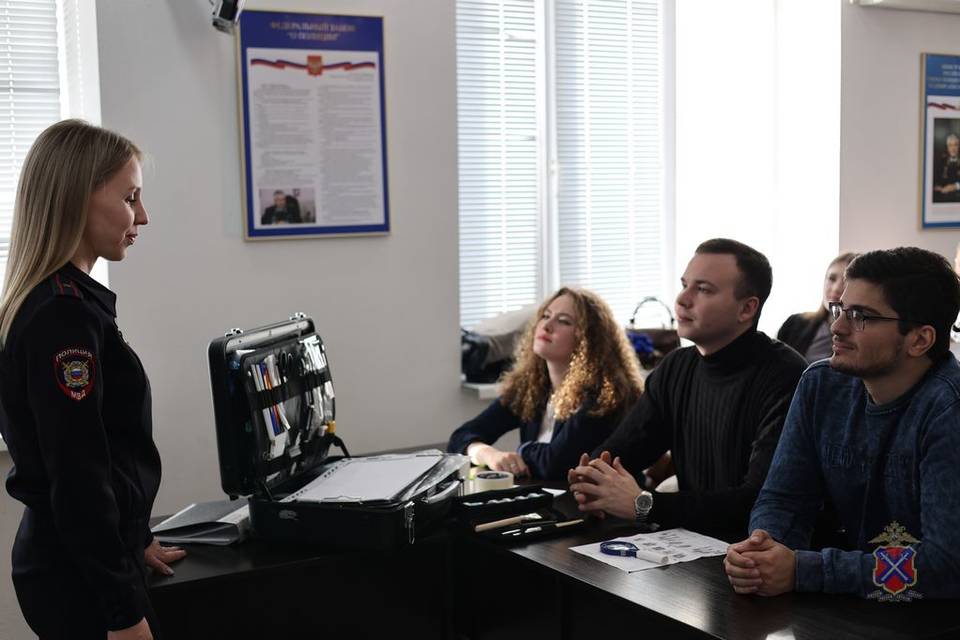 В ходе мероприятия студенты получили представление о деятельности эксперта-криминалиста. Они узнали, как работает служба 02, а также познакомились с особенностями работы следственных подразделений и оперативного блока. Кроме того, молодые люди углубились в историю становления и развития органов внутренних дел.