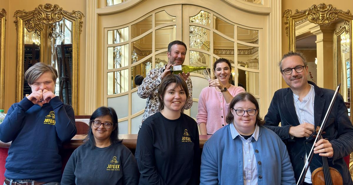 Ils sont quatre. Quatre « équipiers » de la famille de cafés-restaurants solidaires Café Joyeux à s’être donné rendez-vous, ce lundi 10 novembre, en plein cœur du quartier de l’Opéra. En poussant les portes du Théâtre de l’Athénée-Louis-Jouvet, Jacinthe ne peut s’empêcher de pousser un soupir d’émerveillement. « C’est la première fois qu’on fait une séance ici. La plupart n’étaient jamais venus dans un théâtre ou un opéra, c’est une vraie découverte pour eux », commente Laure-Anne Brocard, responsable des actions pédagogiques du Concert de la Loge. Depuis six mois, l’ensemble baroque, dirigé par le violoniste Julien Chauvin, développe un partenariat éducatif et artistique inédit entre ses musiciens et une quinzaine de salariés de Café Joyeux en situation de handicap mental et cognitif. Ce matin, c’est à l’Athénée que ça se passe. La salle Art nouveau, qui accueillait l’orchestre il y a quelques jours pour le Don Giovanni de Mozart mis en scène par Jean-Yves Ruf, a accepté de leur…