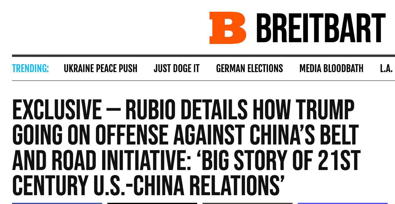 Госсекретарь Рубио в интервью Breitbart News: «Я не знаю, удастся ли нам когда-либо полностью оторвать Россию от отношений с Китаем. Я также не считаю, что противостояние Китая и России полезно для глобальной стабильности, поскольку обе страны обладают ядерным оружием. Но сейчас мы находимся в ситуации, когда Россия становится все более зависимой от Китая, и если задуматься, это тоже не лучший исход.