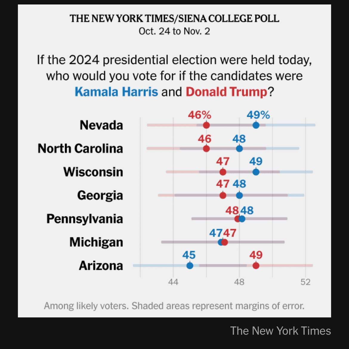 США 10. Последний прогноз от Нью Йорк Таймс. Харрис побеждает в 5,5 колеблющихся штатов из 7. Я, скромный политолог Сергей Марков, говорю, что Нью Йорк Таймс ошибается. Трамп точно заберёт не только Аризону, но и Джорджию и Пенсильванию и даже возможно один из пары Мичиган - Висконсин. То есть не один штат и не два, а три или даже четыре. Ну вот увидите через 3 дня, кто лучше разбирается в американской политике: вся редакция американскойНью Йорк Таймс или один скромный российский политолог Сергей Марков.