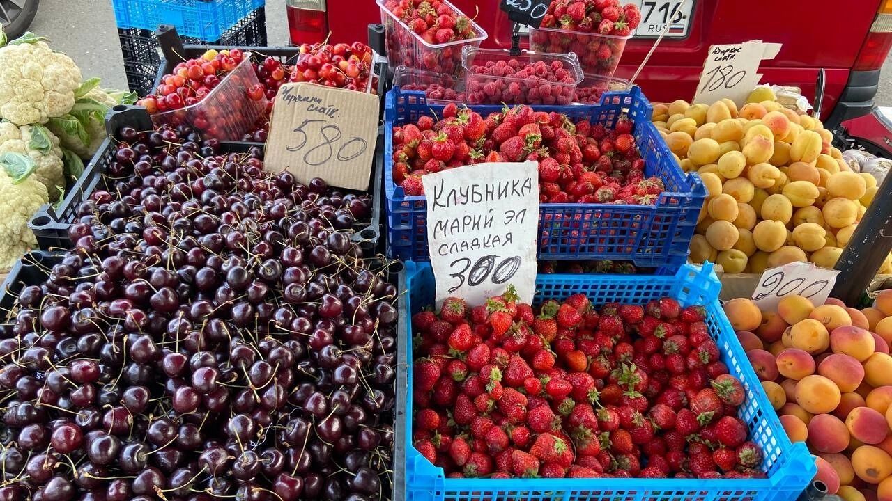 — Берите клубнику по 350, — обращается продавец к мужчине, долго рассматривающему ягоды в ящике.