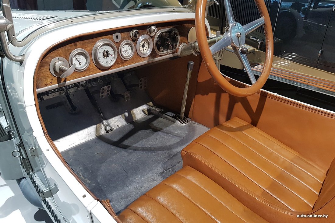 Интересная особенность: в те времена роскошные салоны обивали дорогой тканью, а шоферу приходилось сносить все невзгоды на сиденье, обитом натуральной кожей, которая была не столь прихотливой в использовании.