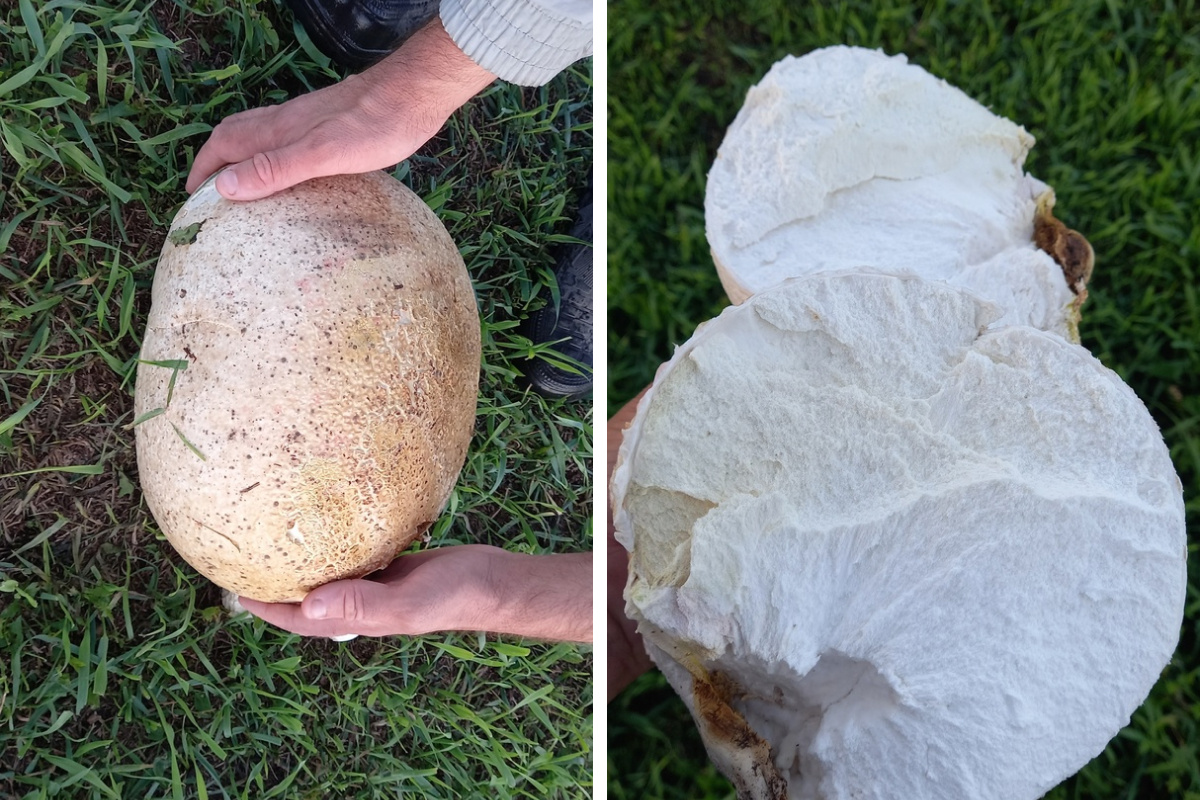 — Даже ведро не наденется на такой гриб, — отметила автор видео, подписчица группы Ольга Русских. — Ходили собирать с мужем цветы и листья на чайные сборы. По дороге увидела полянку шаров. В прошлом году на этом месте был только один дождевик-головач. Самый большой оказался переспевшим. Тот, что с белой мякоть поменьше пожарили с луком.