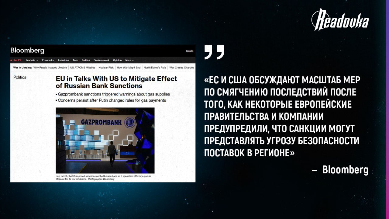 Западные страны оказывают давление на США, чтобы Вашингтон смягчил санкции против «Газпромбанка», пишет Bloomberg. «Газпромбанк» остается единственным банком, через который Запад может вести расчеты за газ с Россией (осуществляемых, причем, в российских рублях). Теперь же Европа может напрочь лишиться возможности покупать российское сырье. Ранее Россия уже перекрыла газовую трубу для Австрии. Два дня назад премьер Венгрии Петер Сийарто публично заявил, что правительство страны обратилось к США с просьбой исключить «Газпромбанк» из санкционного списка.