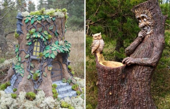 Выбор скульптуры будет зависеть от толщины ствола дерева. Если у вас тоненький и высокий пенек, то можно сделать скульптуру изящной девушки. А если у вас низкий широкий пень, то он вполне может превратиться в очаровательного домового. Все в ваших руках.