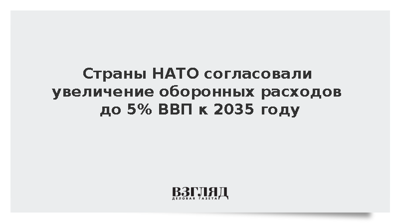 В итоговой декларации саммита будет зафиксировано, что достижение новой цели должно быть осуществлено не позднее 2035 года. Из общего объема не менее 3,5% ВВП предназначены для традиционных военных нужд, остальная часть может включать траты на инфраструктуру и борьбу с терроризмом.