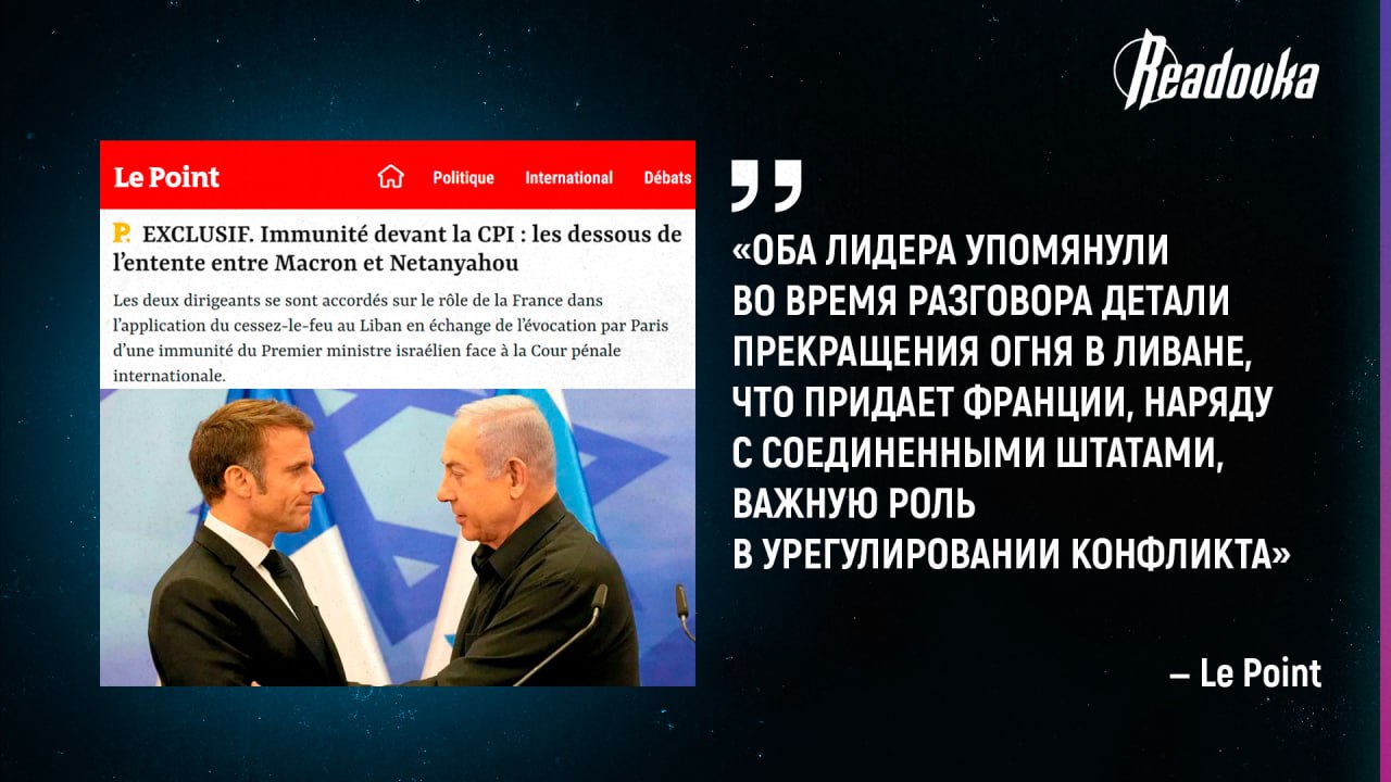 Макрон выбил иммунитет от МУС на территории Франции для Нетаньяху взамен на участие Парижа в переговорах по Ливану