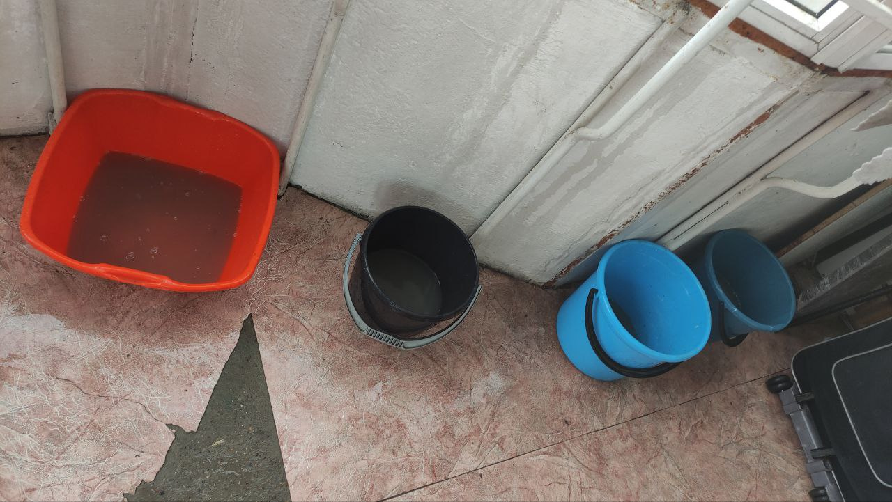 Екатерина, владелица квартиры, пострадавшей от случившегося, говорит, что воду пришлось собирать ведрами и тазом. Влага просочилась на балкон, несмотря на то, что он застекленный.