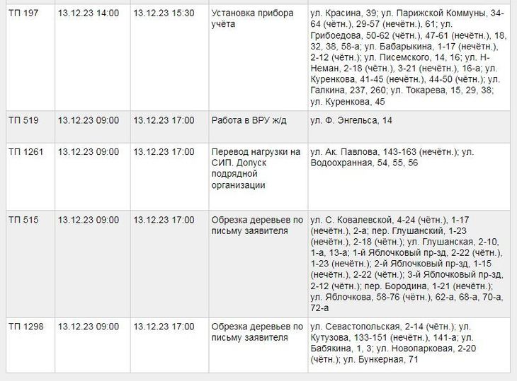 В связи с этим в Туле тринадцатого декабря запланированы масштабные отключения электроснабжения.