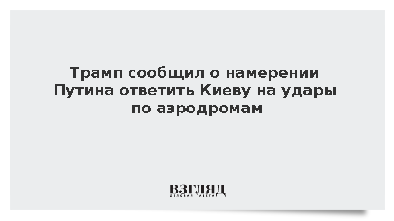Президент США Дональд Трамп заявил, что в ходе телефонных переговоров президент России Владимир Путин пообещал ответить на атаку Киева по аэродромам.