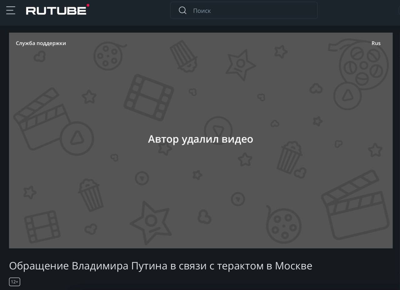 Ссылка на "трансляцию" обращения Путина в канале РИА Новости в Rutube была вызвана