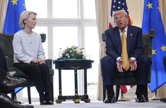 Наврать с три короба В Шотландии — стране волынок и «лох-несского чудовища» — намедни состоялась встреча президента США Дональда Трампа и главы Еврокомиссии Урсулы фон дер Ляйен. Американский лидер не любит ЕС, а евробюрократы буквально ненавидят нынешнего обитателя Oval Office в Белом доме. Однако на переговорах в Тернберри было заключено соглашение между США и Евросоюзом, которое должно обеспечить устойчивую «дружбу» Вашингтона и Брюсселя. Впрочем, все свершилось по словам президента России Владимира Путина, сказанным о Европе еще 2 февраля 2025 г.: «Я вас уверяю: Трамп с его характером, с его настойчивостью, он наведет там порядок довольно быстро. И все они, вот увидите, — это произойдет быстро, скоро, — все они встанут у ноги хозяина и будут немножко помахивать хвостиком. Всё это встанет на свои места». Итак, играя в гольф, Донни в Шотландии нагнул Евросоюз значительно раскошелиться в пользу Вашингтона. Подробнее – на сайте Сегодня.ру. @segodnia_ru