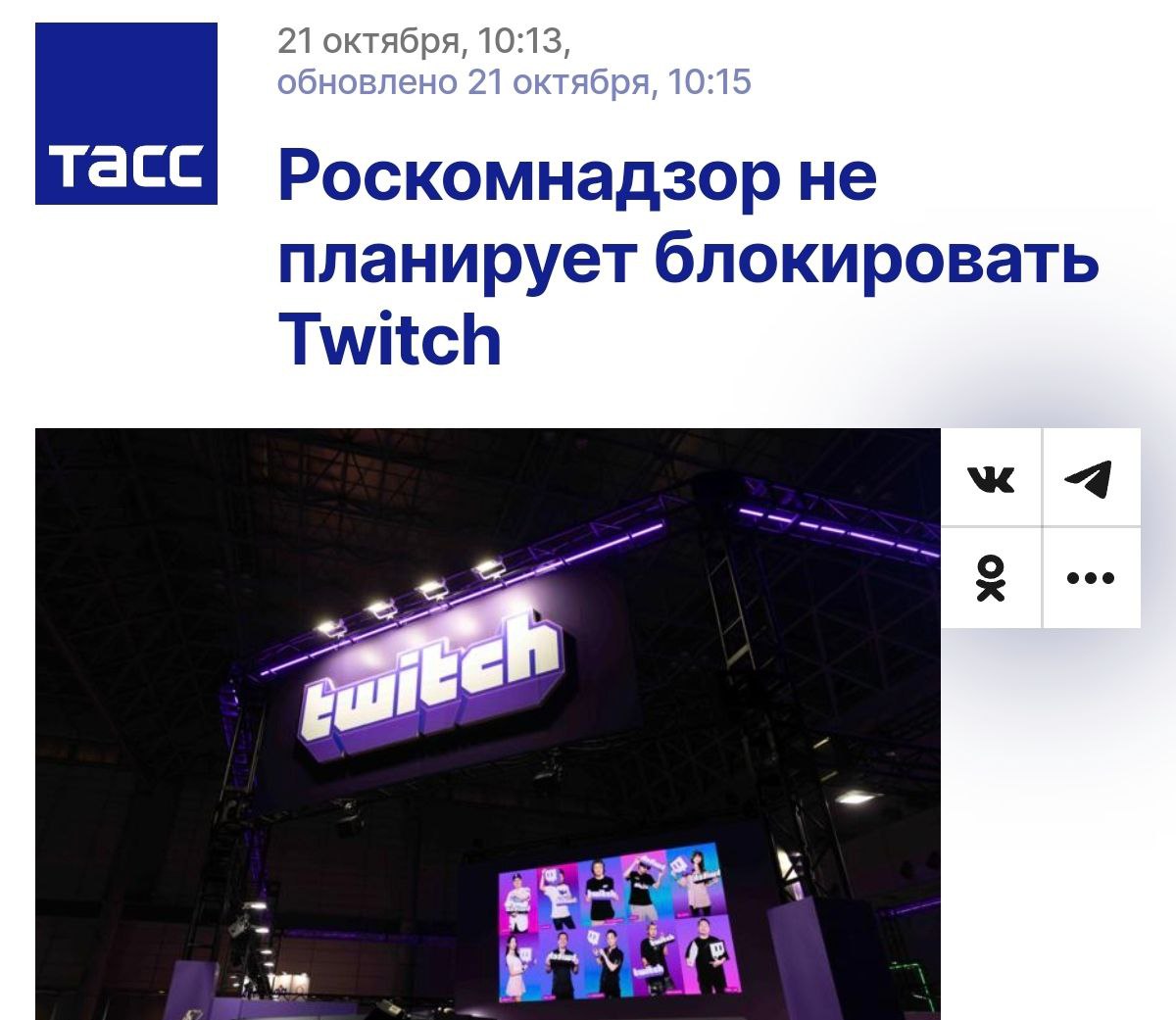 ⚡️Twitch остаётся: РКН официально высказался, что планов по блокировке стриминга — нет.