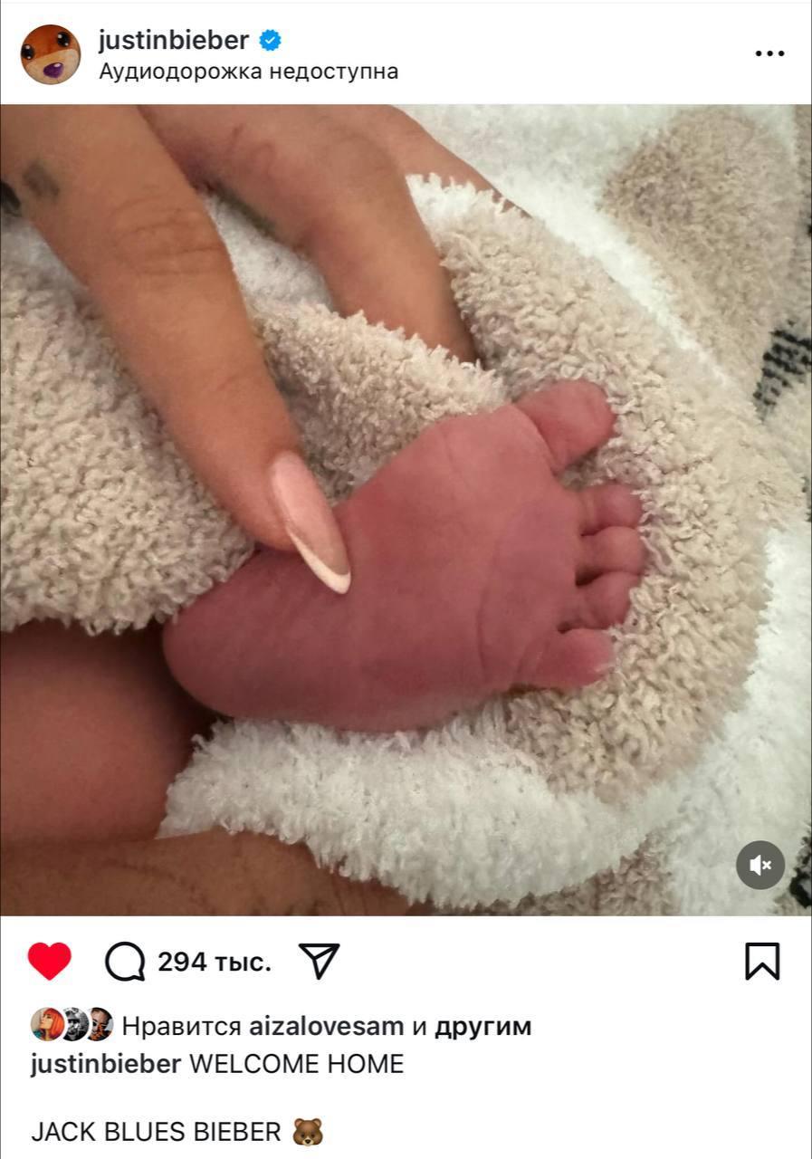 Джастин опубликовал фото маленкой ножки новорожденного сына в соцсетях в пятницу, и подписал: «Добро пожаловать домой, Джек Блу Бибер», но позже удалил пост. И так было несколько раз, что вызвало замешательство поклонников, которые решили, что аккаунт звезды взломали.