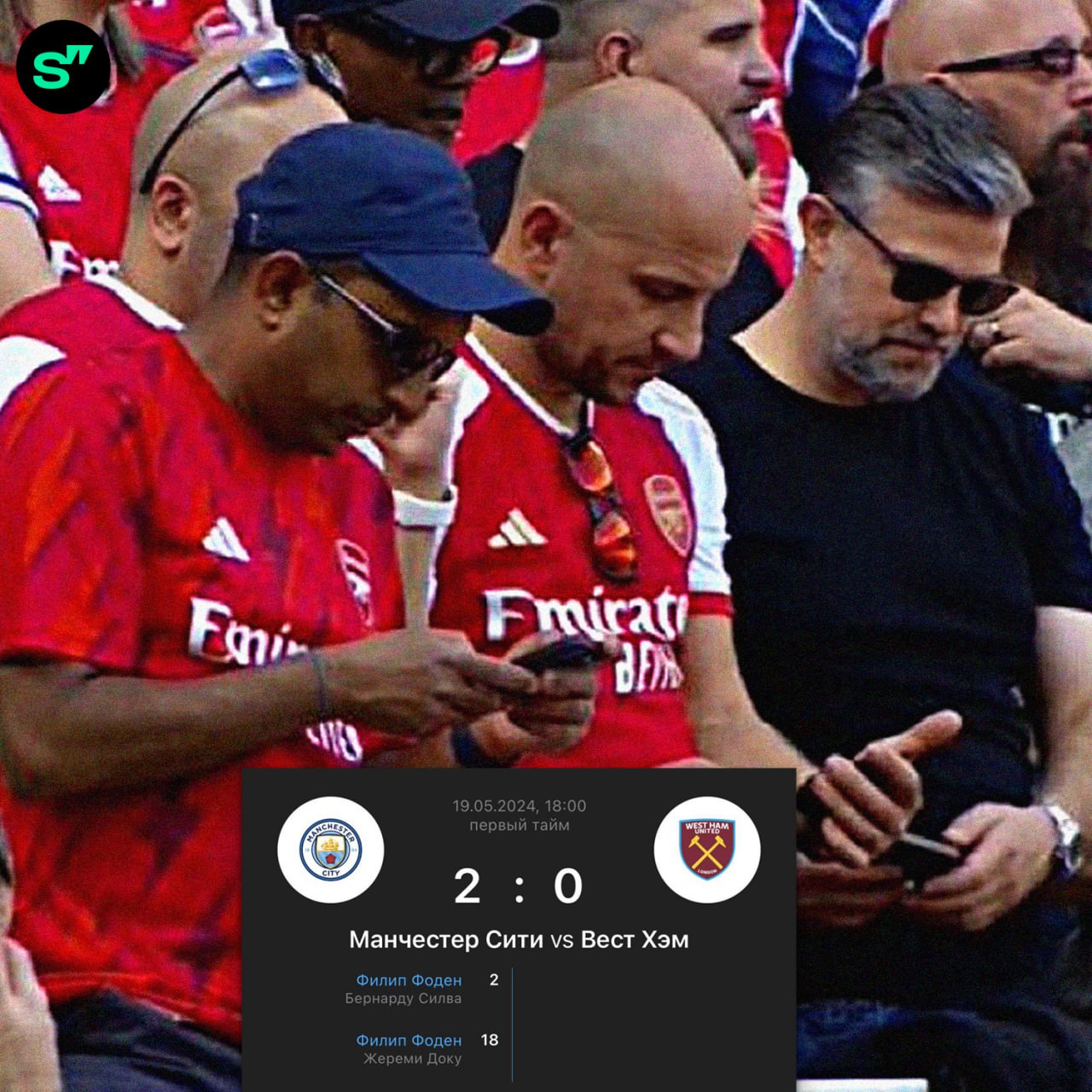 👀📲 Фанаты «Арсенала» следят за параллельным матчем «Сити» – а там лучший игрок сезона АПЛ не оставляет им никаких шансов на титул
