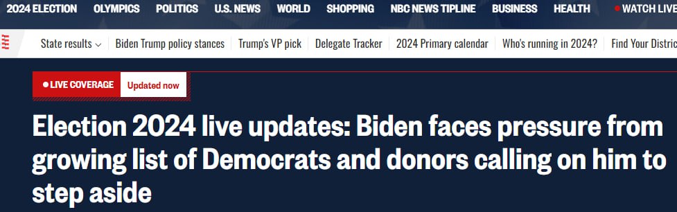 ⚫️ Ранее крупные спонсоры демократов призвали Байдена выйти из президентской гонки. Среди них – продюсер Эбигейл Дисней и cоучредитель Netflix Рид Хастингс.