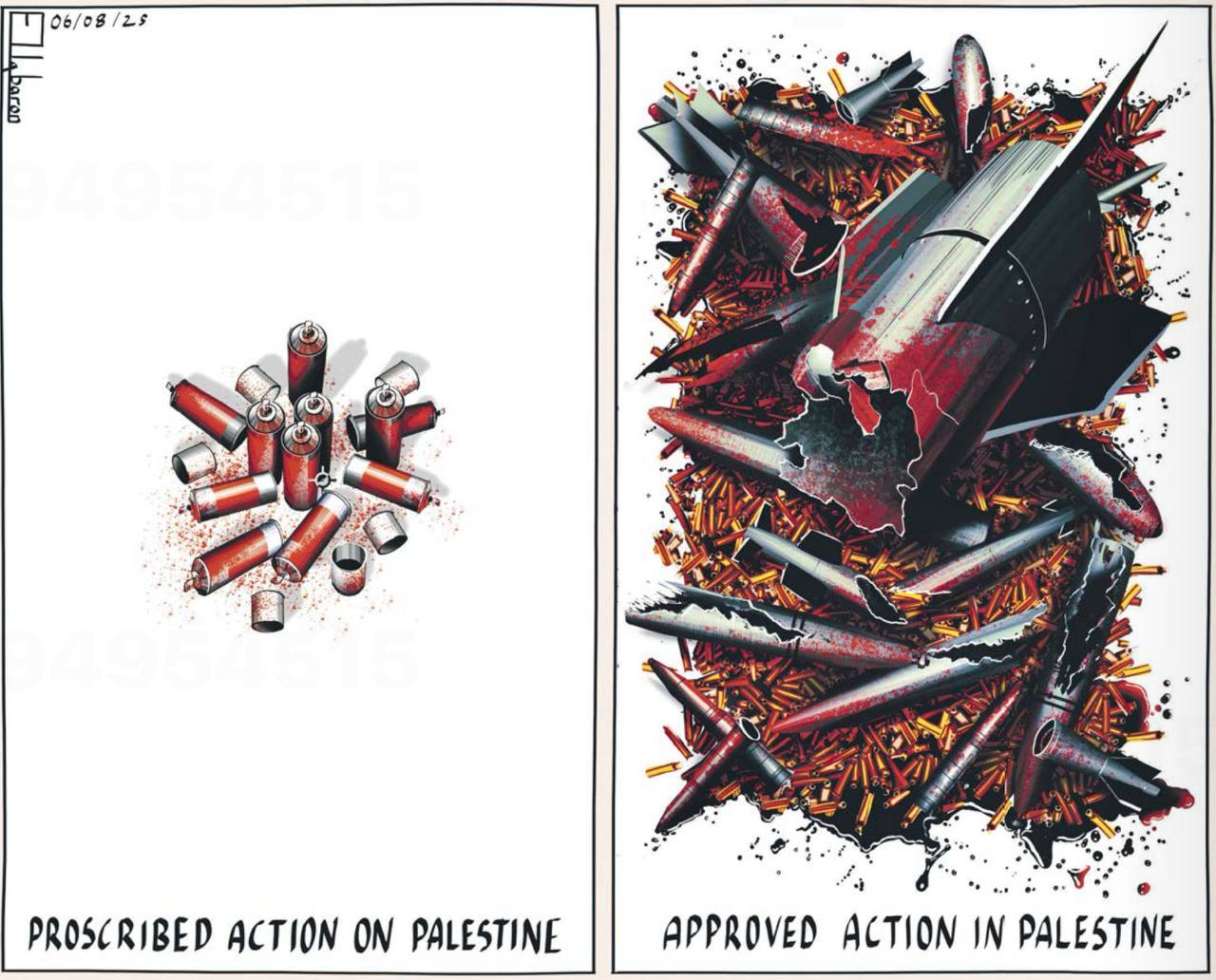 Газета The Guardian наглядно демонстрирует лицемерие британской власти. То есть она запретила намеченный на эту неделю митинг в поддержку Палестины, но вполне одобрила поставки оружия для бомбежек Палестины. То есть баллончики с краской запрещены, бомбы для убийства - пожалуйста!