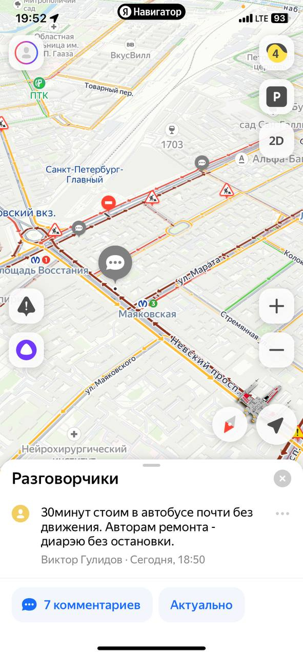 «Ближе к Московскому вокзалу троллейбус сломался, плюс ремонт. Водитель автобуса поехал не по выделенной полосе, она стоит в мертвую от Литейного и Владимирского», — написала читательница «Фонтанки».