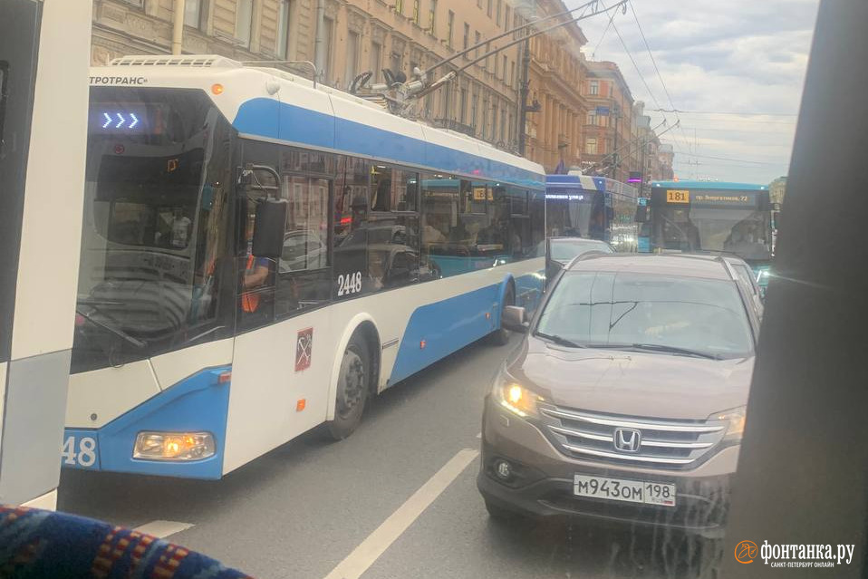 Сломавшийся в час пик троллейбус окрасил в «бордовый» Невский от Литейного до Лиговского